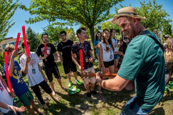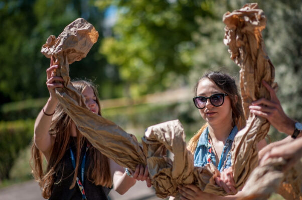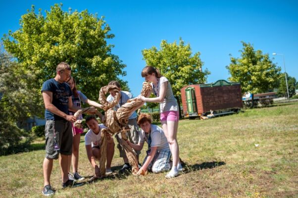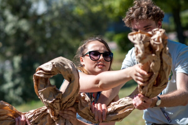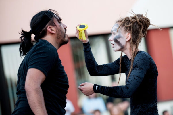 Polsko – niemiecka młodzież z zespołów teatralnych (ponad 150 osób) brała także udział w warsztatach artystycznych. Prowadzący: Daniel Jacewicz i Teatr Brama, tancerka Paulina Woźniak, Piotr Stefański i Studium Instrumentów Etnicznych, oraz duet Matias Urroz z Chile i Katinka Ulmer z Niemiec zadbali o pozytywną energię i niesłychaną aktywność podczas zajęć. Warsztaty dotyczyły nie tylko nauki różnych dziedzin teatru jak: improwizacji, nauki tańca i choreografii, wyrażania emocji na scenie ale przede wszystkim współpracy w międzynarodowych grupach. Praca warsztatowa zbliżyła uczestników, pobudziła do aktywności, otwartości wobec siebie oraz na sztukę… Efektem wspólnej pracy był niesłychanie emocjonujący pokaz wszystkich uczestników podczas zakończenia Festiwalu. Kiedy to osobiste historie, emocje, energia grały główną rolę w tym teatralnym pokazie.