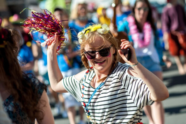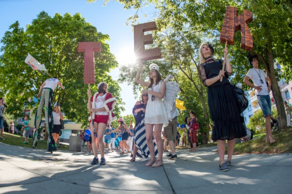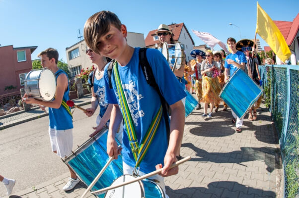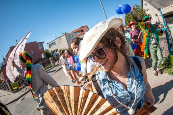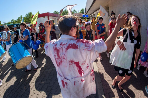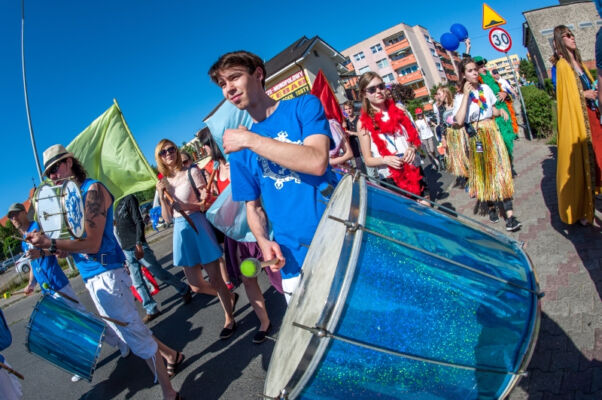 TEK-owe działania rozpoczęły się tradycyjnie happeningiem. Przemarsz festiwalowiczów ulicami Polic prowadził zespół Bloco Pomerania. Happening pełen pozytywnej energii zapraszał mieszkańców Polic do świętowania maratonu teatralnego, który rozpoczynał się w czwartek i trwał do niedzieli w Miejskim Ośrodku Kultury w Policach. Przemarsz zakończył się przy ulicy Zamenhofa, gdzie czekał już gość festiwalu Teatr A3 – Kolekcjonerzy Wzruszeń z Hajnówki ze spektaklem pt. „Zmysły”. Artyści za pomocą wielkich rekwizytów: nosa, uszu, dłoni, itp., wprowadzili publiczność w świat absurdu i komizmu. Zagadkowo, śpiewająco i z przymrużeniem oka, zza trzepotu rzęs bohaterowie spektaklu uwodzili publiczność surrealistycznym kabaretem lirycznym. Tak rozpoczęła się V edycja Teatralnej Elipsy Kreatywności.