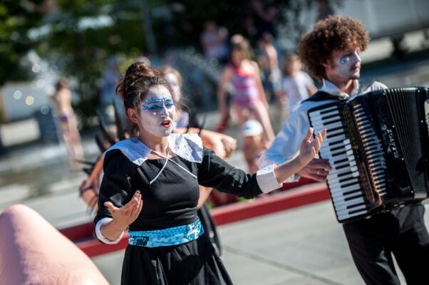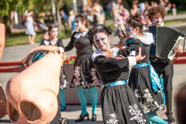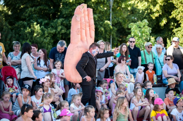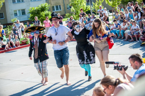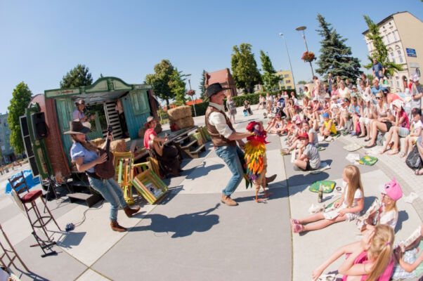 Kolejnym gościem zaproszonym do Polic był Teatr Pinokio z Łodzi, który w piątkowe popołudnie zaprezentował na Starym Rynku bajkę dla dzieci pt. „Świnki 3”. Perypetie bohaterów na Dzikim Zachodzie, toczyły się wśród fruwającego pierza, w rytm dzikiej muzyki country i bluegrass- granej na żywo. I podobnie jak w czwartkowe popołudnie, tak i w piątkowe odbiorów plenerowego spektaklu nie brakowało. Po mimo upalnej pogody publiczność brała aktywny udział w teatralnych działaniach ulicznych.