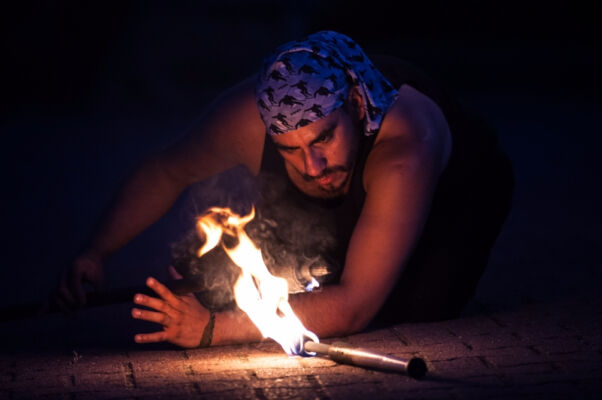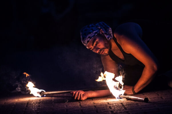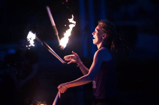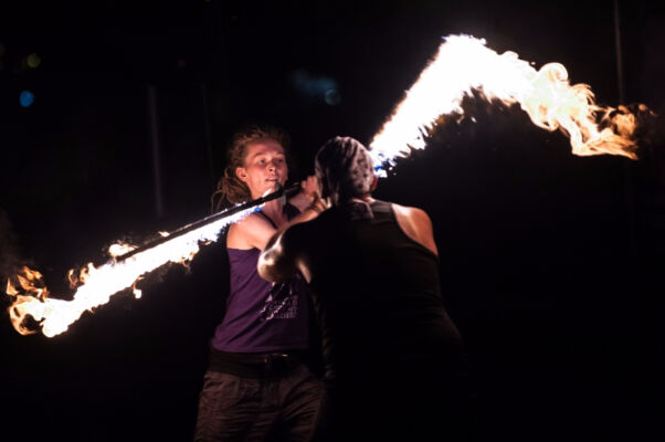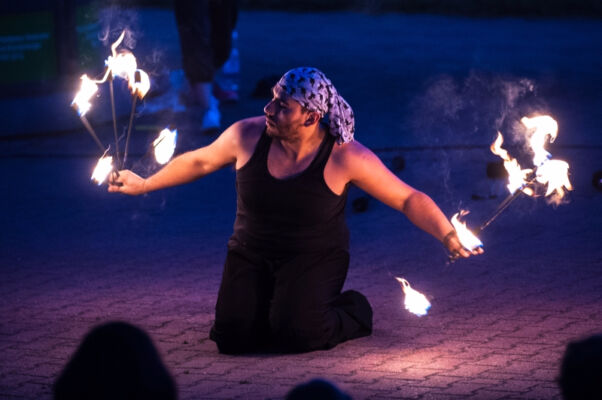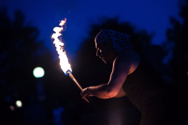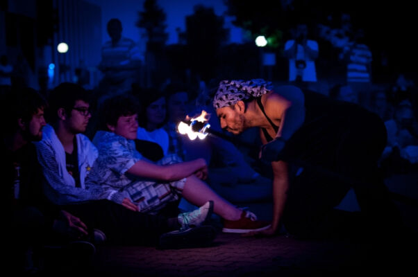 Po zmroku, tuż przy budynku polickiego MOK-u odbył się żywiołowy pokaz ognia pt. „Feuerzoofirezoofuegozoo” w wykonaniu Matiasa Urroz z Chile oraz Katinki Ulmer z Niemiec. Następnie niemiecki zespół Stage Divers(e) zaprezentował spektakl pt. ,,Make Art No War!”, co w wolnym tłumaczeniu znaczy „róbmy sztukę – nie wojnę”. Wieczór zakończyli gospodarze Festiwalu – Teatr Elipsa z polickiego MOK-u ze spektaklem „Czar Sobótki”.