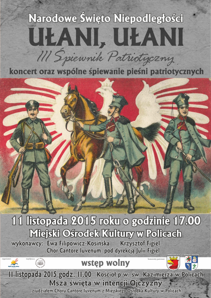 12 listopada 2015 Święto Niepodległości w polickim MOK-u Śpiewnik Patriotyczny pt. „Ułani, ułani” już po raz trzeci został wydany przez Miejski Ośrodek Kultury w Policach z okazji Święta Niepodległości. Otrzymali go przyby... czytaj dalej >