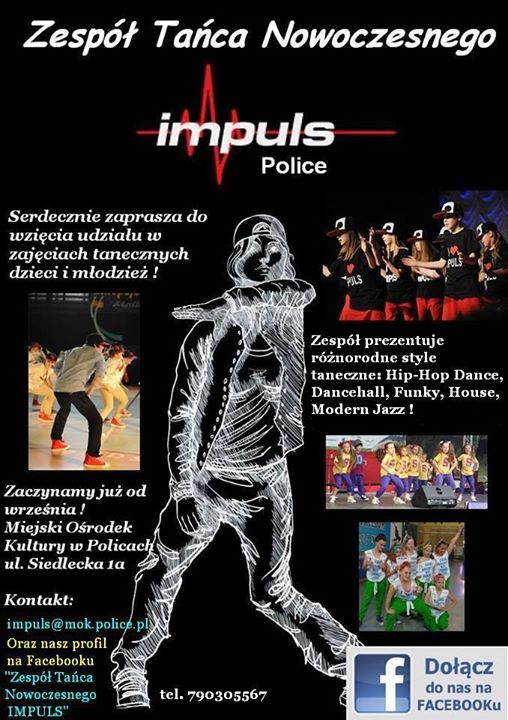 1 października 2014 Zespół Tańca Nowoczesnego „IMPULS“ zaprasza! Zajęcia startują już od 8 września w Miejskim Ośrodku Kultury w Policach. Założycielem, twórcą, instruktorem i choreografem zespołu jest pani Iwona Kusa. Drugim Instrukto... czytaj dalej >