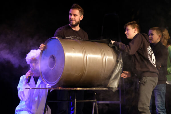Pierwszy tydzień ferii upłynął na wspólnych zabawach na scenie oraz w salach warsztatowych. Młodzi poszukiwacze przygód, jak dotąd mieli okazję uczestniczyć w chemicznych i wybuchowych eksperymentach prowadzonych przez zwariowanych naukowców i super bohaterów. Walentynkowa zabawa dostarczyła równie gorących wrażeń, a szczęśliwi wybrańcy zostali hojnie obdarowani nagrodami. Swoje talenty muzyczne i wokalne młodzież prezentowała podczas zabawy w karaoke. To nie wszystkie atrakcje. Publiczność licznie gromadziła się w sali widowiskowej by uczestniczyć w przedstawieniach teatralnych. W repertuarze były bajki „Złota kaczka” Teatru Trójkąt Zielonej Góry, a także „Podróże Tymka” Teatru Elipsa z Polic.