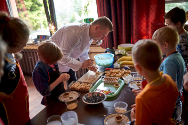 Największą popularnością cieszyły się warsztaty kulinarne. W ramach zajęć dzieci robiły muffinki, nugetsy oraz sałatki owocowe. Wspólne gotowanie dostarczyło nie tylko wspaniałej zabawy ale było także okazję do poznania nowych zapachów, smaków i przepisów. Warsztaty upowszechniały także zasady zdrowego odżywiania.