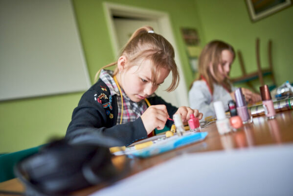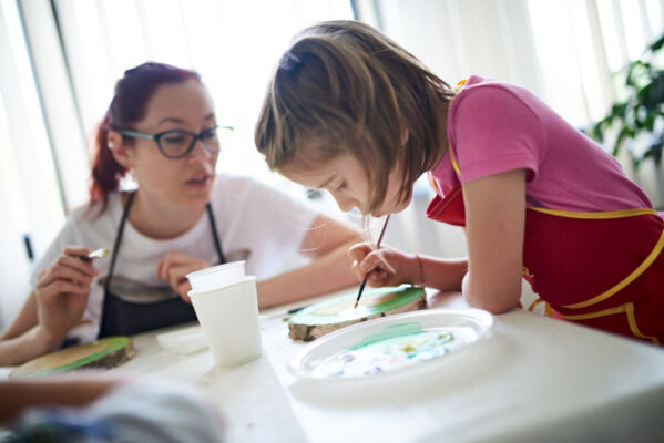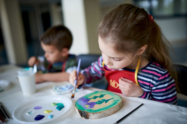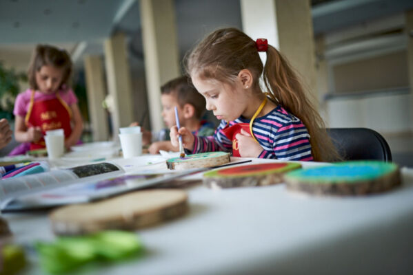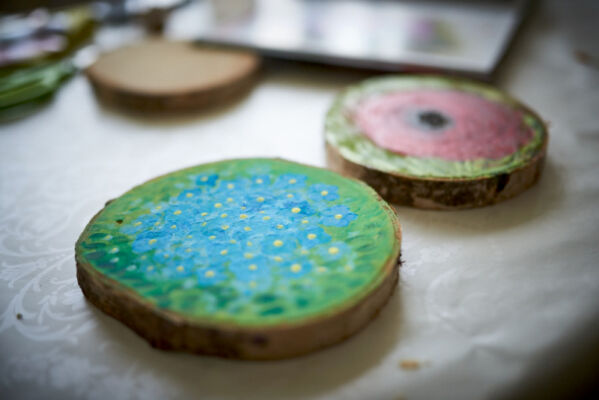 Podczas warsztatów malowania na pieńku na specjalnie przygotowanych kawałkach drewna powstaway przepiękne malowidła w postaci roślin, kwiatów, zwierząt.